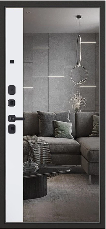 Надежная входная Дверь Scandi с зеркалом премиум класса по цене 46 175 руб. Большая толщина стали защитит от проникновения в ваш дом, квартиру или коттедж. Используется очень качественная фурнитура: замки, цилиндры, ручки, защелки. Покрытие и отделка двери изготовлено под внимательным контролем производителя. Дверь имеет долгий срок службы и гарантию.