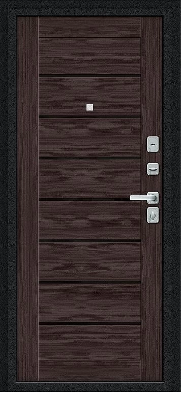 Надежная входная Дверь Браво Техно/BChrome Букле черное/Wenge Melinga премиум класса по цене 35 875 руб. Большая толщина стали защитит от проникновения в ваш дом, квартиру или коттедж. Используется очень качественная фурнитура: замки, цилиндры, ручки, защелки. Покрытие и отделка двери изготовлено под внимательным контролем производителя. Дверь имеет долгий срок службы и гарантию.