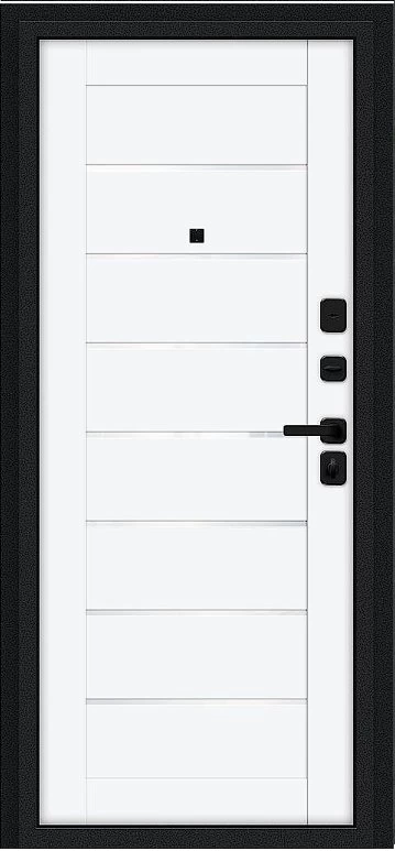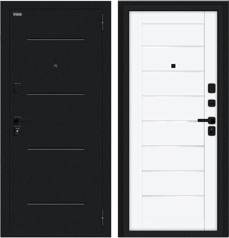 Надежная входная Дверь Браво Техно/SBlack Букле черное/White Silk премиум класса по цене 36 075 руб. Большая толщина стали защитит от проникновения в ваш дом, квартиру или коттедж. Используется очень качественная фурнитура: замки, цилиндры, ручки, защелки. Покрытие и отделка двери изготовлено под внимательным контролем производителя. Дверь имеет долгий срок службы и гарантию.